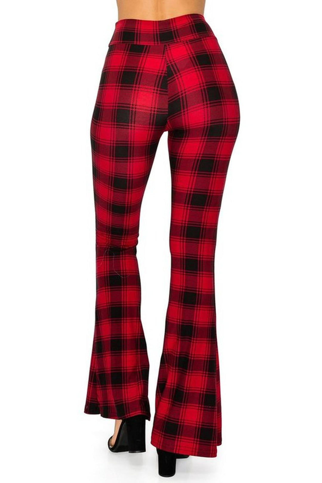 Wholesale Buttery Smooth Red and Black Plaid Bell Bottom Leggings