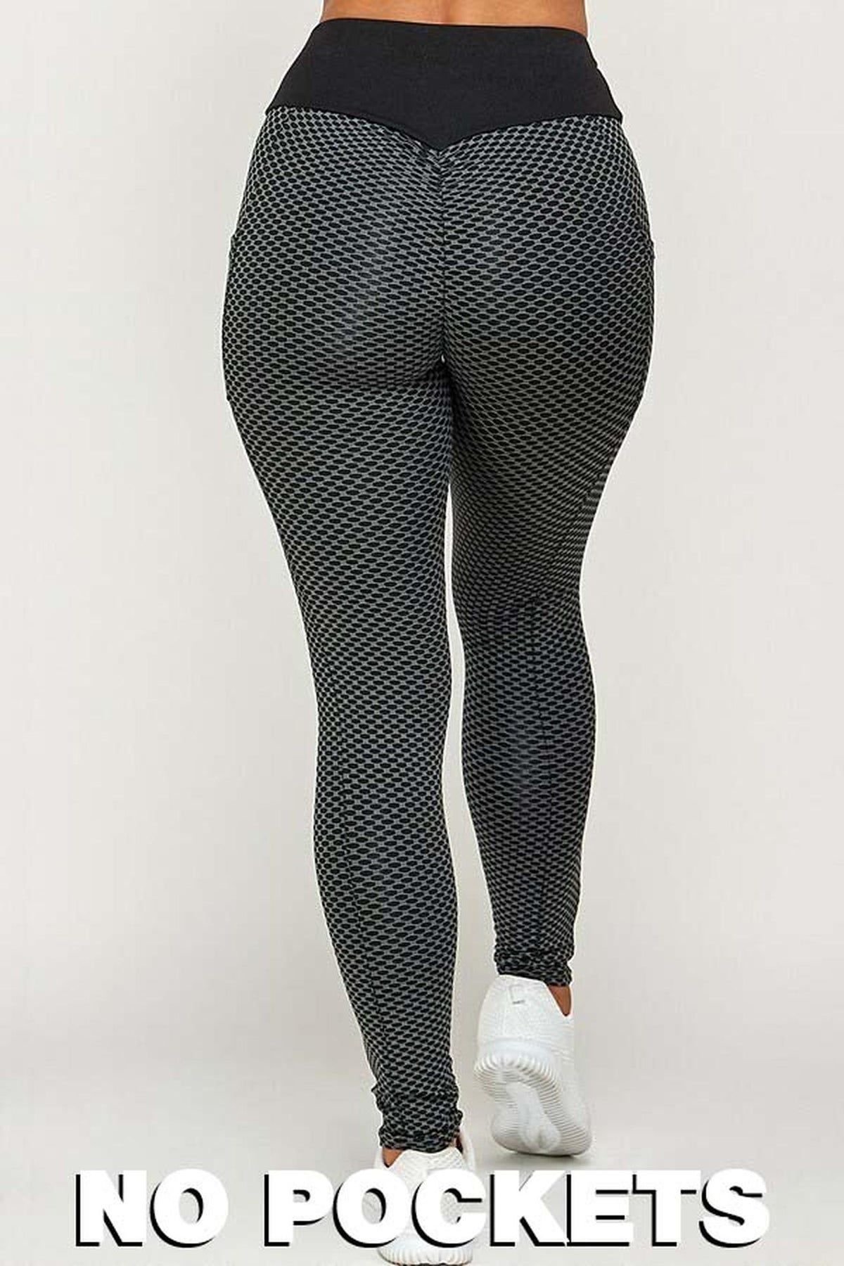 NO POCKETS ON THIS STYLE Imported Amazing Ultra Flattering High Waist Scrunch Butt Leggings Cool Contrasting Texture and Waist Band Finish Side Pocket Ideal for Cell Phone or Small Personal Items Perfect for Working Out or Athleisure Casual Fashion Premium Activewear Fabric Booty Lifting Scrunch Butt Fitted Detail 65% Cotton 30% Polyester 5% Spandex Model is wearing size S/M Measurements are 32B x 24 x 36 and height is 5' 6" Hand Wash, Professional Cleaning