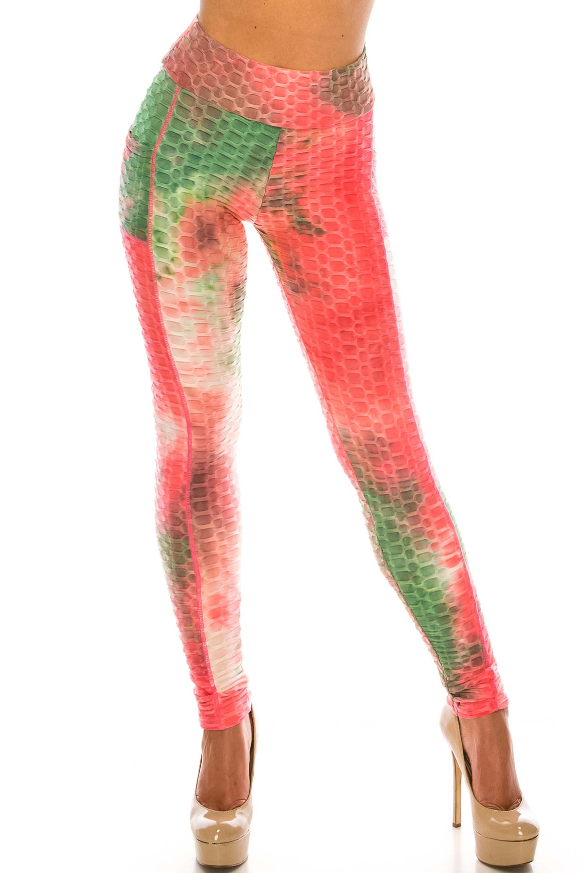 Wholesale Premium Coral Olive Tie Dye Scrunch Butt Workout Leggings with Side Pockets