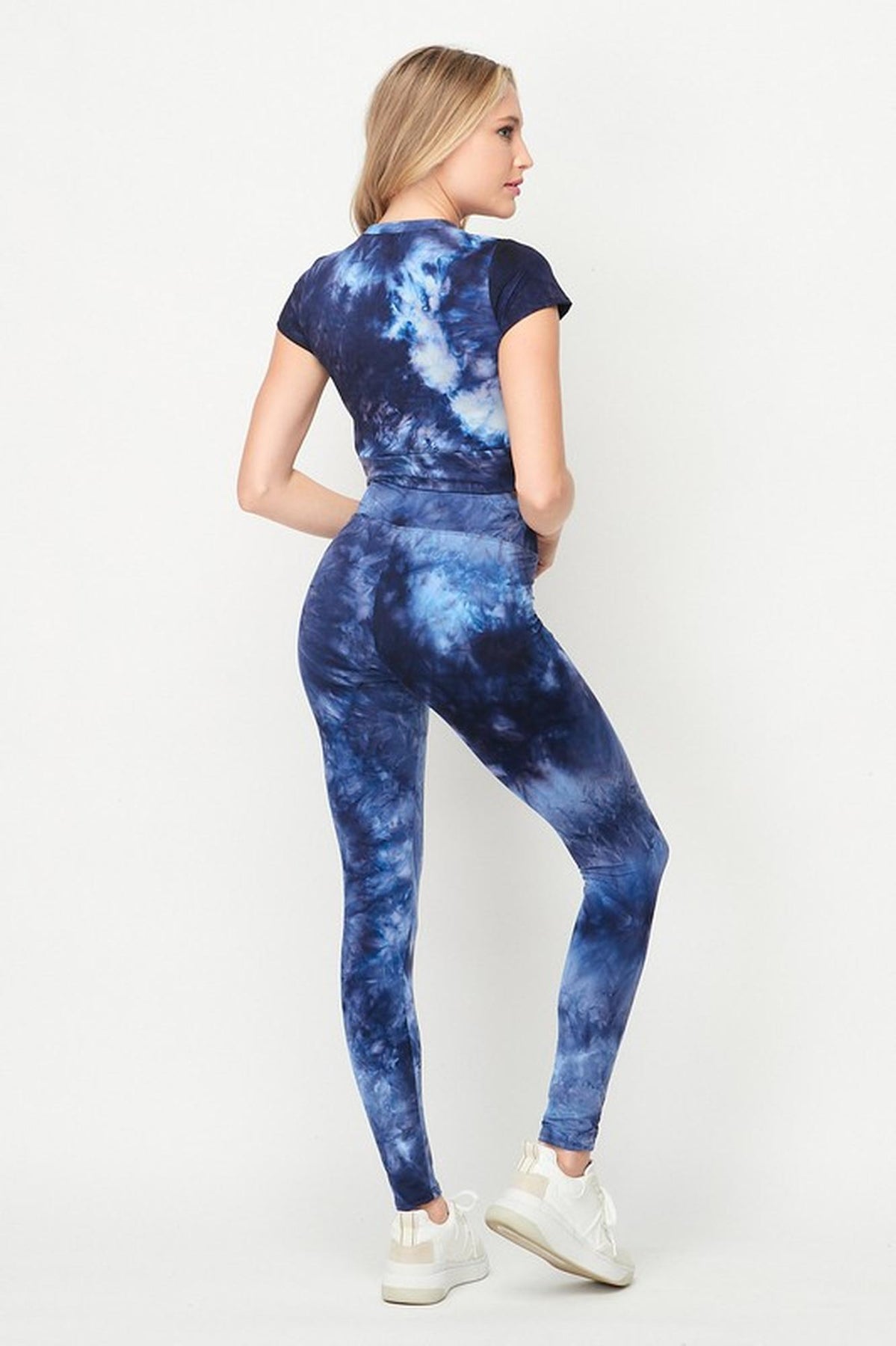 Wholesale Tie Dye 2 Piece Leggings and Short Sleeve Crop Top Set