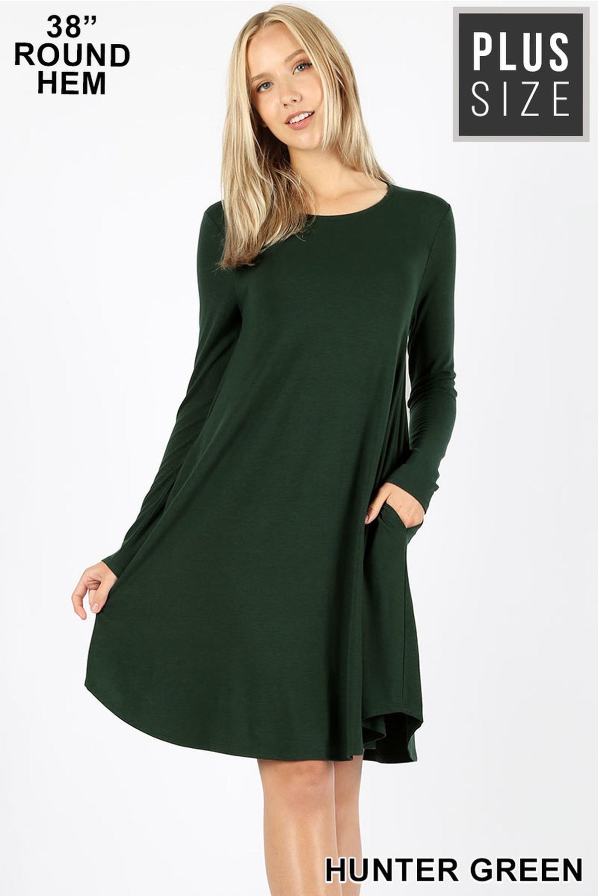 Wholesale Premium Long Sleeve A-Line Round Hem Plus Size Rayon Tunic with Pockets