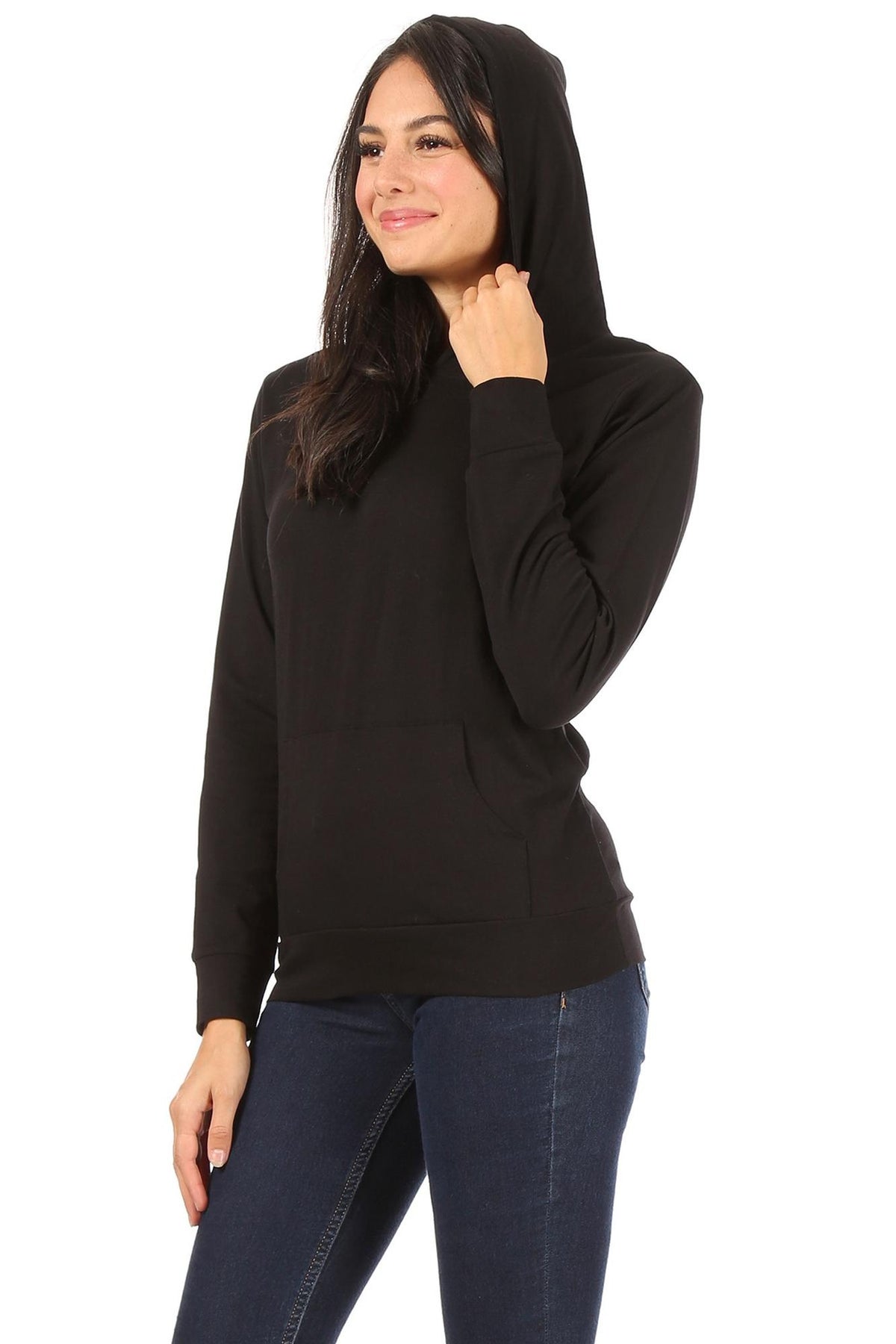 Imported Cotton Pullover Hoodie with Pockets Ideal for Everyday Fashion and For Workouts Premium Quality with Easy Style The perfect throw and go fashion piece 95% Polyester 5% Spandex Machine Wash (Delicate) or Professional Wash Model is wearing a S/M Measurements are 32B x 24 x 34 and height is 5' 7"