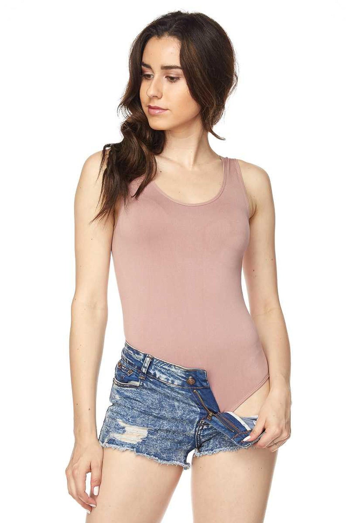 Imported A Versatile Solid Seamless Bodysuit Snap Button Closure with Thong Back Perfect for Pairing with Shorts, Skirts, and Pants Can be Styled to look Dressy or Casual Features A Wonderful Soft Peach Fuzz Fabric A Stunning Body Hugging Fit 92% Nylon 8% Spandex Hand Wash or Machine Washable on Delicate