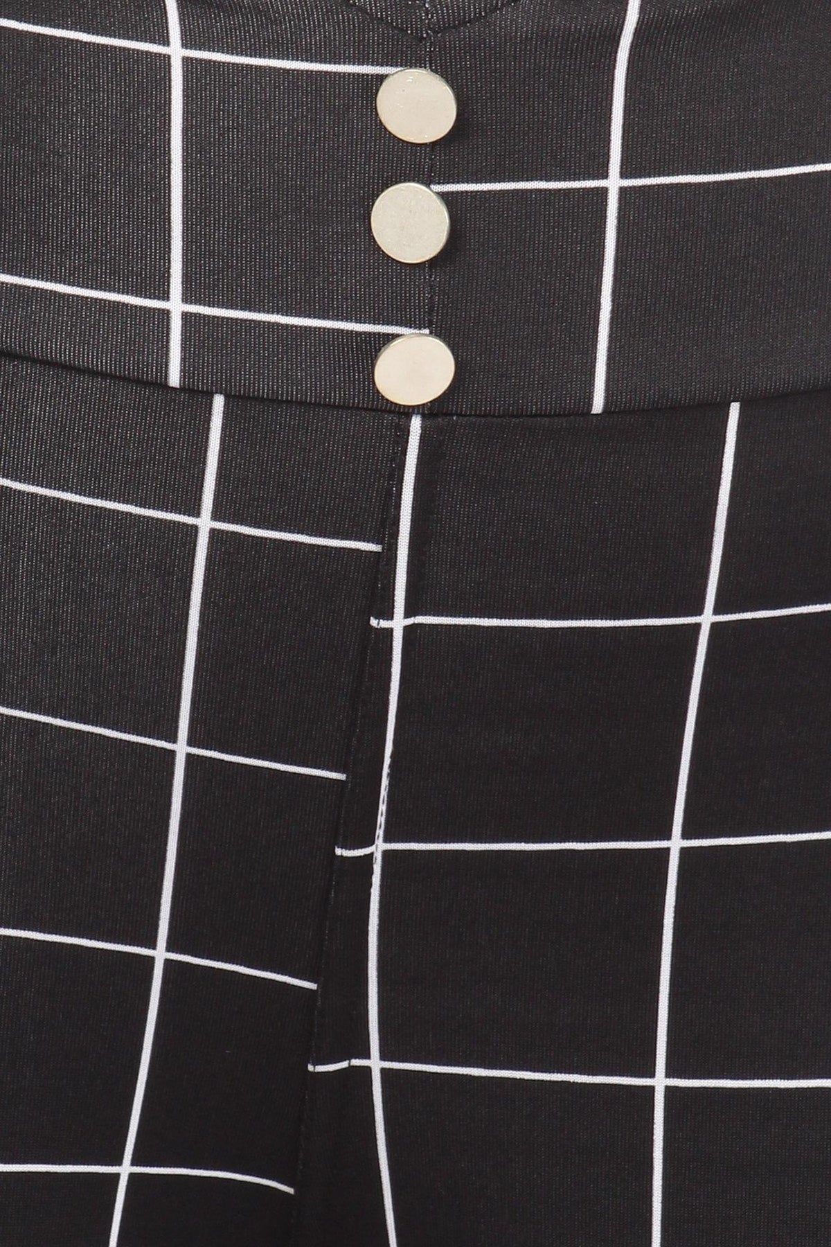 Stylish Black and White Grid Print Treggings with Three Button Accent and Pockets