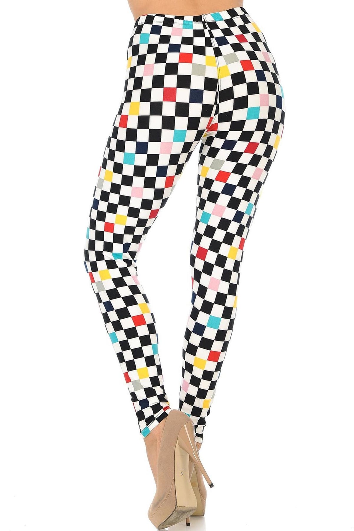 Wholesale Buttery Smooth Color Accent Checkered Plus Size Leggings - 3X-5X
