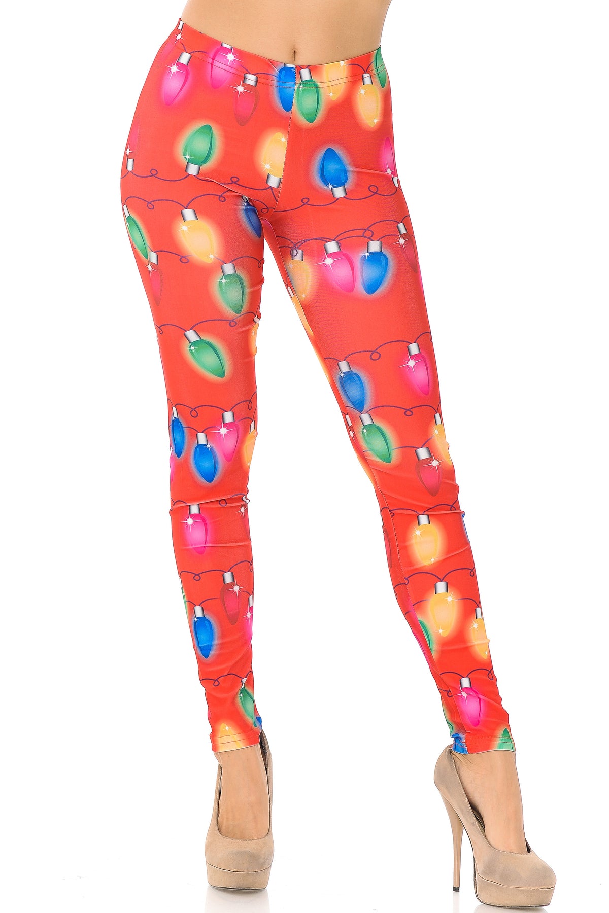 Wholesale Ruby Red Colorful Christmas Lights Plus Size Leggings